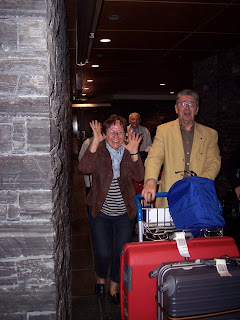 Onze ouders kwamen afgelopen zaterdagmiddag gezond en wel aan hier in Calgary. Ze hadden erg weining moeite gehad met de reis, alles was zo nieuw en interessant, het was helemaal niet zo lang geweest vonden ze. Wij zagen ze al op de schermen in de aankomsthal terwijl zij dachten onbespied de bagage op te halen! We konden ze mooi in de gaten houden op die manier.