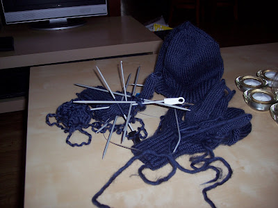 I don't know why but on these long dark winter nights I always get that urge to start knitting. Last winter I produced two hats already, and now I am making a set with warm double gloves, something like normal gloves with an extra mitt around it. I like the process of knitting, adjusting the pattern, taking it out, starting over etc. As you can see on the picture above it was a bit of a mess during the knitting of each separate finger with all the saved stitches on several other needles. But the result will be good!